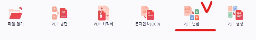 알 pdf 를 실행한 후 홈 메뉴에서 " pdf 변환" 아이콘을 클릭합니다.